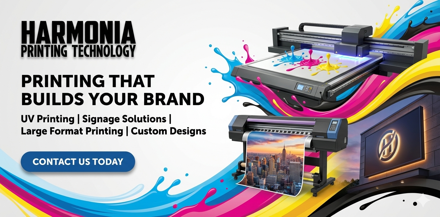 Harmonia Printing Technology is a trusted printing company specializing in UV printing, digital printing, and custom signage solutions. We deliver high-quality, large format printing and branding materials with sharp detail, vibrant colors, and long-lasting results to help your business stand out.